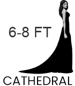 Cathedral: For a more dramatic look, the cathedral train extends six to seven feet from the waist, ideal for a formal, traditional wedding ceremony in a large venue.