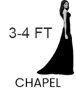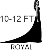 Royal: Select a royal train for the ultimate bridal statement in a grand, luxurious wedding. This train is best for large, opulent spaces and when bride's movement is minimal.