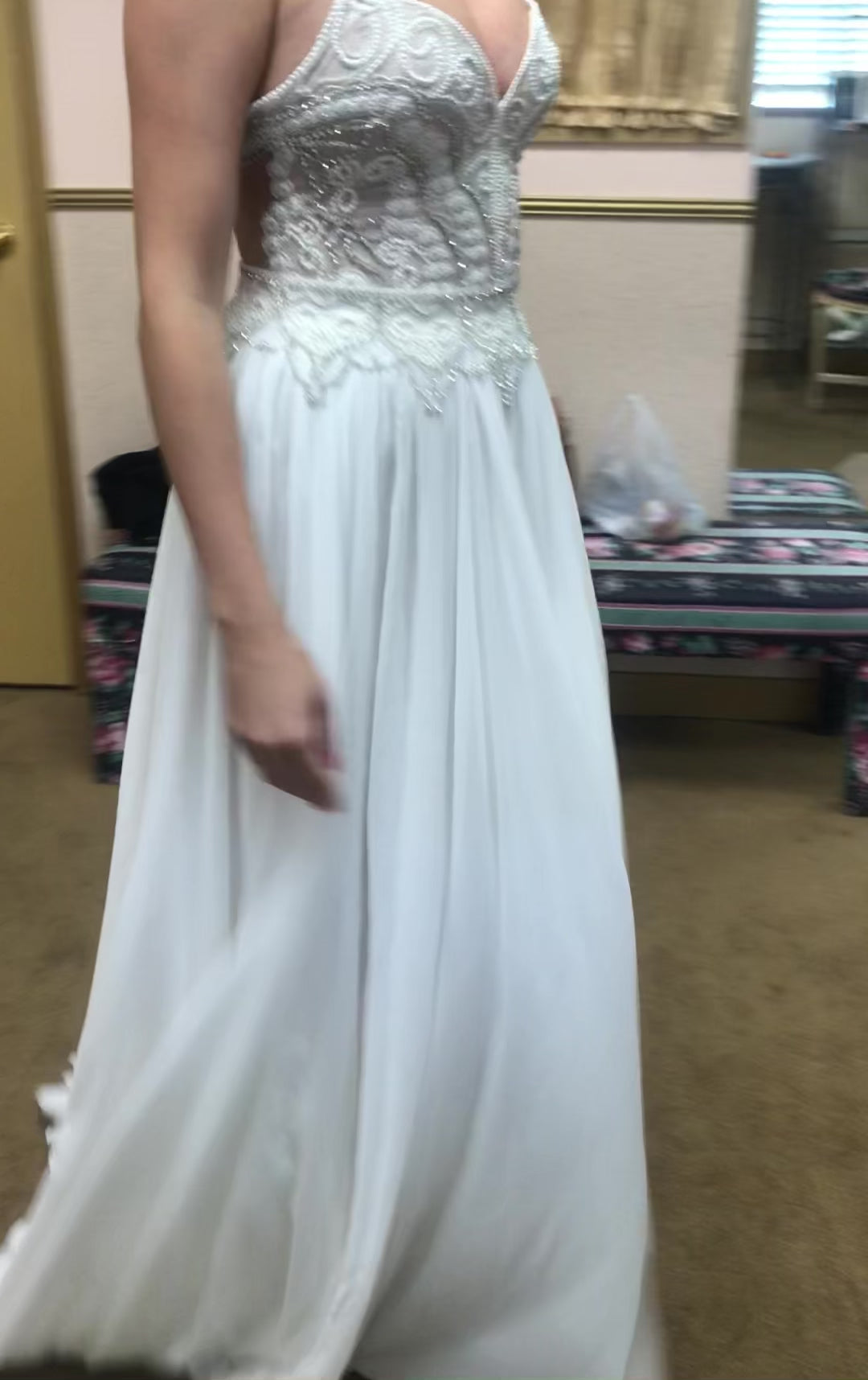 - Detachable skirt or overskirt, Beading, Pearls